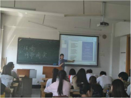 接着,王老师向同学们详细介绍了诵读与鉴赏法语诗歌的方法。第一步就是翻译,将法语译成汉语;第二步是查阅,查阅诗歌的作者、诗歌创作的年代、诗歌创作的背景;第三部是理解,理解诗歌中蕴含的感情。只有这样,才能更好地理解诗歌,诵读诗歌。