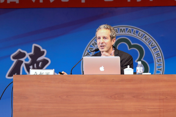 讲座中,森舸澜教授通过自身在研究中进行的一个思维驱动球体实验进行导入,阐释了中国传统哲学中“无为思想”的重要性。他认为“无为思想”本身就是一个矛盾体,所以人的思想行为要顺应宇宙的规律,在遵循宇宙规律的基础上积极发挥人的作用,而不是消极地、被动地顺其自然,或者什么都不做。当一个人真正放松下来,不去思考输赢的时候反而可以取得最后的成功。他以自己的视角解释了“无为”是顺应自然、不妄为的意思,同时结合生活中与我们息息相关的例子,如攀岩、表演、约会、面试等,来说明“道”与“德”之间的关系。道,就是严格按照自己的职责办事,职责范围以内的事,一定要做得恰到好处;而在人的现实生活中,“道”体现为“德”。 他认为“无为”就是以一种从心所欲的自然状态,来达到“德”的境地。同时,森舸澜教授还将中国哲学与西方的体验认知相结合来为我们展示“无为”思想,并将“无为”思想运用到生活中去,以此来取得更好的学习与工作效果。