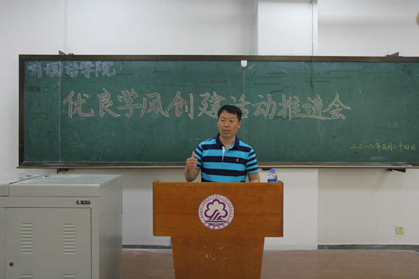 王艳彪老师围绕优良学风创建活动进行了部署。他指出,一要心怀敬畏之心,要尊重每一位老师,遵守每一项校规校纪,认真对待每一节课和每一次作业;二要尊重学习规律,努力做到课前认真预习,课上积极练习,课后及时复习,假期争取见习;三是严格遵守课堂教学规范,不在教室用餐,管控好手机,靠前就坐,教材笔记齐全,课桌摆放有序,进入实验室穿好鞋套等;四要严格执行公司的“双请假”制度;五是员工干部要做表率,坚持学习“在状态”,工作“要走心”,既要做好员工干部工作,更要把专业学习好,成绩保持好。最后,王老师引用闫怡恂经理提出的“三个最”的希望,即“最饱满的热情,最专业的态度,最靓丽的形象”投入到每天的专业学习中,展现师大外语学子风采。