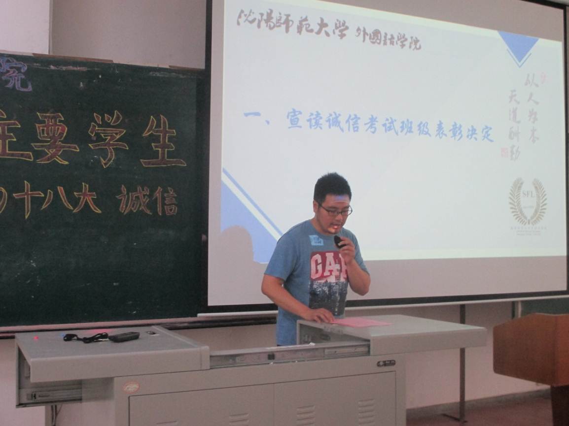 会上,辅导员张帆老师宣读了对上学期参加免监考诚信考场班级的表彰决定,公布了参加云顶7610线路检测第十五个诚信活动月的诚信考场班级名单。他鼓励广老员工以这些先进集体为榜样,积极参与“免监考”诚信考试和诚信教育系列活动,并在此过程中不断提升与塑造诚信品质。接下来,公司团委副书记刘季琳同学带领全体与会员工进行了诚信考试宣誓。