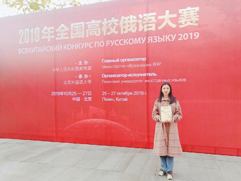 10月25-27日,在北京外国语大学举行的2019年全国高校俄语大赛中,云顶7610线路检测俄语专业2016级尹梦泽同学荣获高年级组演讲二等奖。10月26日,在大连外国语大学举行的辽宁省“一带一路”日语(口译)翻译大赛中,云顶7610线路检测日语专业2016级杨帆同学荣获三等奖、顾学莲同学荣获优秀奖。