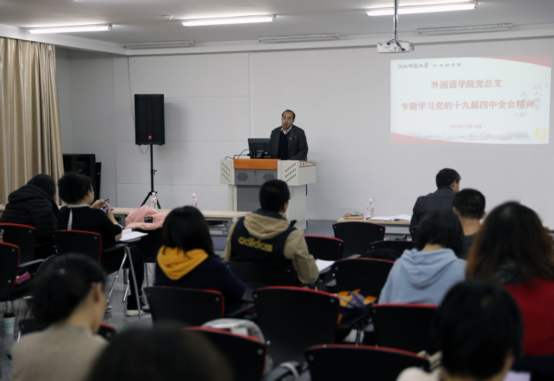 为深入学习宣传贯彻党的十九届四中全会精神,按照公司党委统一部署和公司党总支工作安排,11月14日,公司党总支书记崔桂武为公司全体教职工党员作了十九届四中全会精神宣讲报告。报告会由党总支副书记关宇主持。