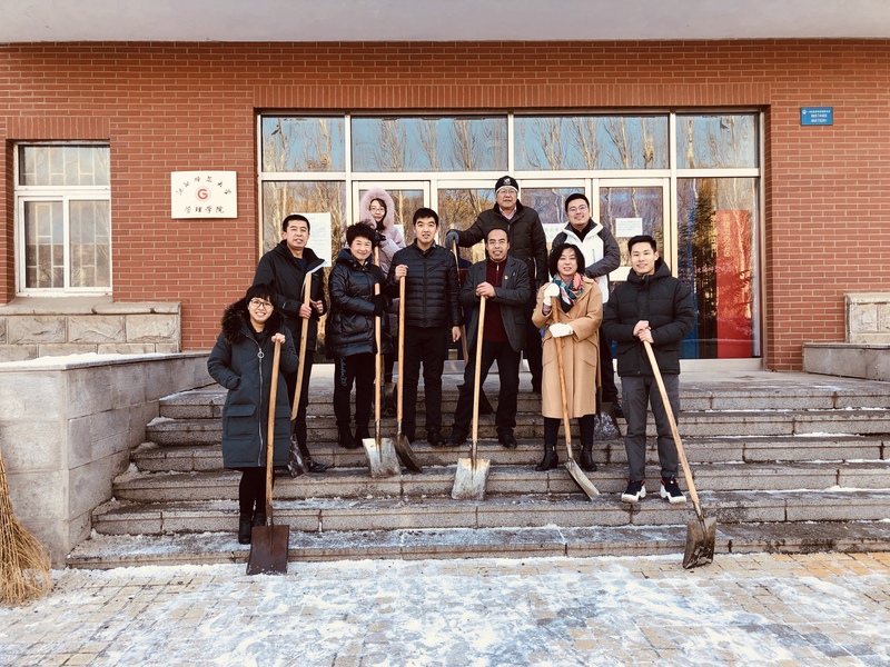 18日上午9时,云顶7610线路检测教工第三党支部组织全体党员清扫汇文楼北侧路上积雪。支部10名党员不畏严寒,挥舞铁锹、笤帚清扫积雪,除冰的声音此起彼伏,悦耳动听。大家齐心协力,通力配合,经过2小时热火朝天的劳动,台阶上的冰被全部清除,路面上的雪被全部清扫干净,为广大师生清扫出一条干净整洁的“安全”通道。望着自己的劳动成果,看着出入汇文楼的师生不再如履薄冰,大家充满成就感,每个人脸上都洋溢着开心的笑容。