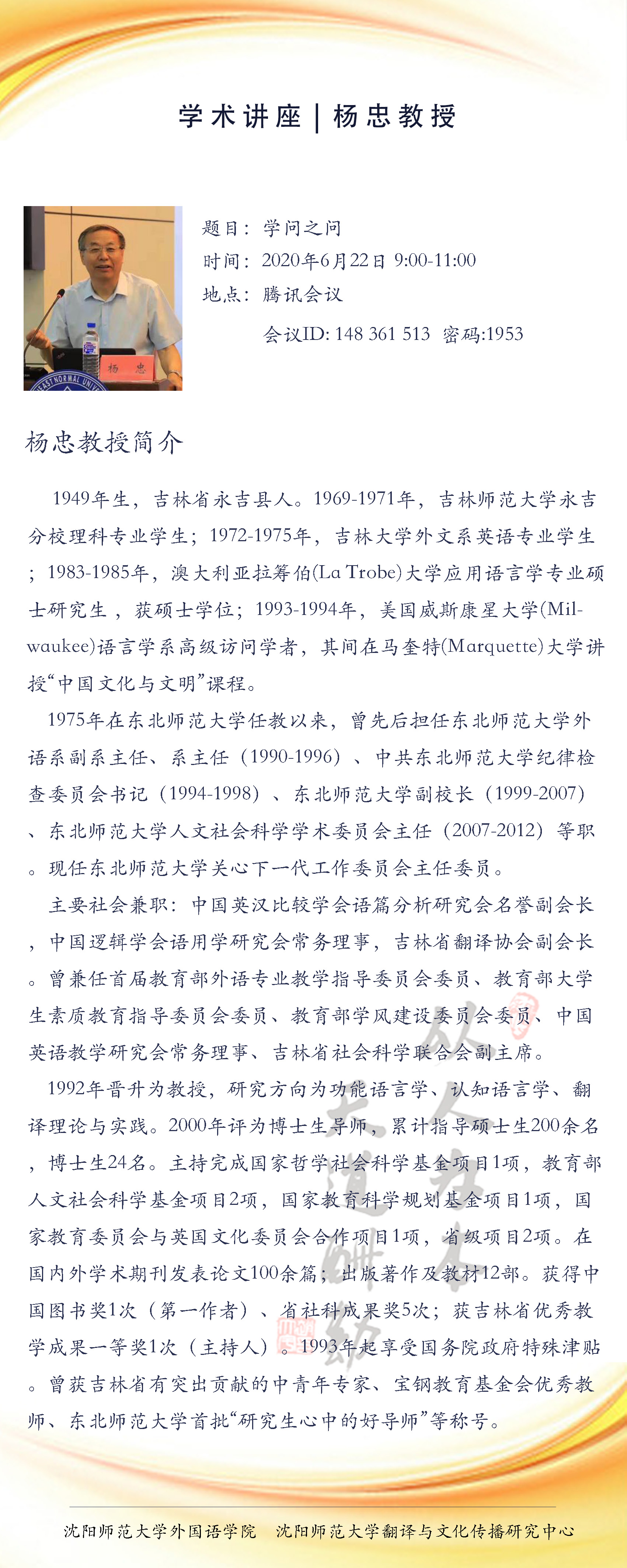 6月22日,云顶7610线路检测邀请东北师范大学杨忠教授主讲的“学问之问”专题学术报告以腾讯会议的形式成功举办。公司教师、研究生以及其他高校教师和研究生近200人参与了本次学术讲座。