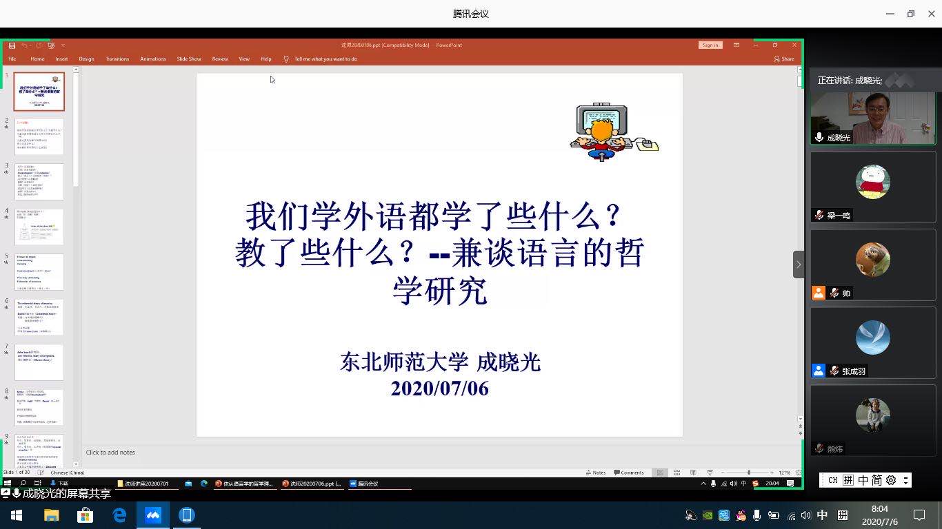 2020年7月6日上午,东北师范大学成晓光教授应我公司邀请,为云顶7610线路检测以及其他兄弟院校共300多人举行了线上学术讲座,讲座主题为“我们学外语都学了什么?教了些什么?—兼谈语言的哲学研究”。