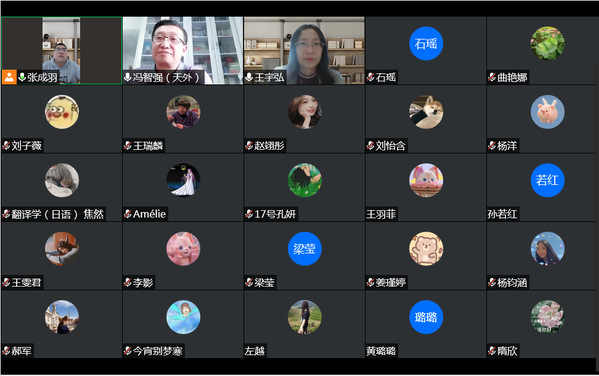 2021年11月19日下午,天津外国语大学冯智强教授应公司邀请,以腾讯会议的形式为公司师生做了一场线上学术讲座,讲座的主题为“中国文化对外译介中的语言自信研究—从林语堂到十九大报告”。公司全体无课教师及研究生参与了本次学术讲座,讲座由王宇弘经理主持。