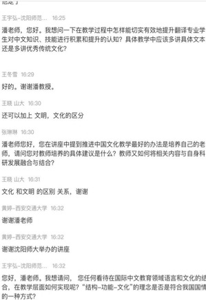 在互动环节中,与会者提出自己在外语教学和外语学习中遇到的疑问,潘教授逐一耐心解答,现场气氛十分热烈。潘教授旁征博引,博古通今,妙语连珠,风趣幽默。他精深的学术造诣和深厚的国学底蕴,让与会师生受到极大的启迪。