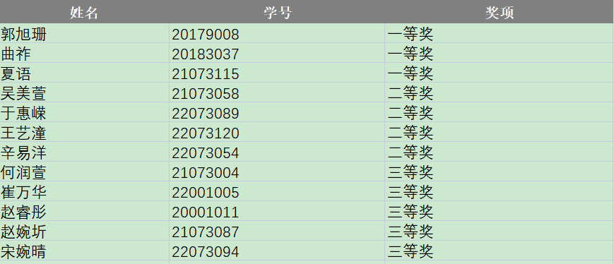 经过评审,共评选出一、二、三等奖12名,具体名单如下表所示。其中获得一等奖的郭旭珊、曲祚、夏语三名同学将代表公司参加省赛。