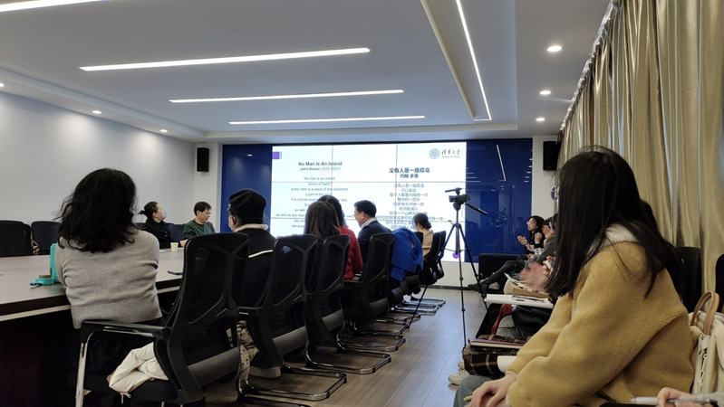 讲座最后,生安锋教授以约翰.多恩的一首诗《没有人是一座孤岛》,结束了今天的精彩讲座。现场老师及同学围绕讲座内容向生教授进一步请教,生教授非常耐心地回答了各位老师和同学提出的问题。徐明玉副经理在总结发言中表示,生教授的讲座列举了大量引用及相关文献参考,向大家展示了外国语言文学界的前沿理论与最新看法,每位参加讲座的老师和同学都受益良多,希望生教授能经常来公司传经送宝、指导工作。